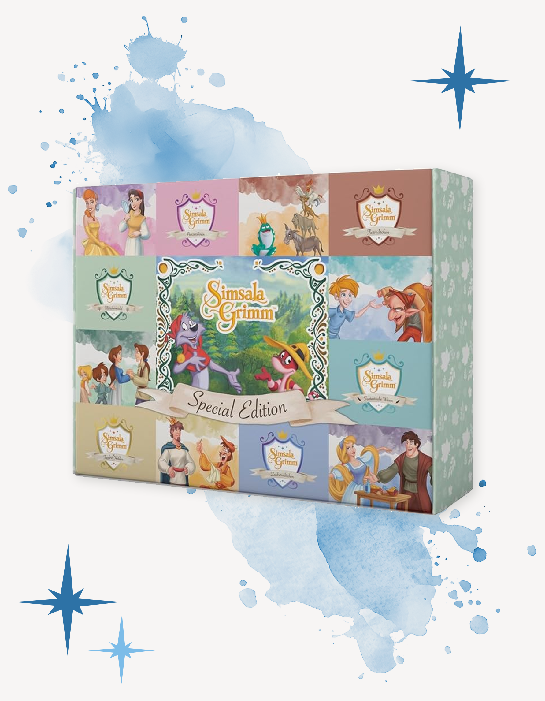 Tauche ein in die zauberhafte Welt von SimsalaGrimm mit dieser exklusiven und auf 1.000 Stück limitierten Box zum 25. Jubiläum, die Märchenfans jeden Alters verzaubert!